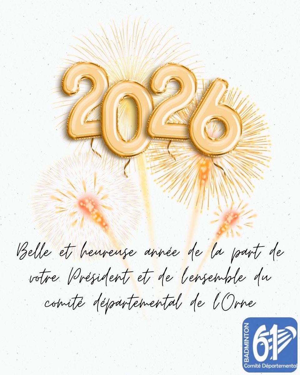 Belle et Heureuse Année 2026 de la part de toute l'équipe du Comité de l'Orne de Badminton.